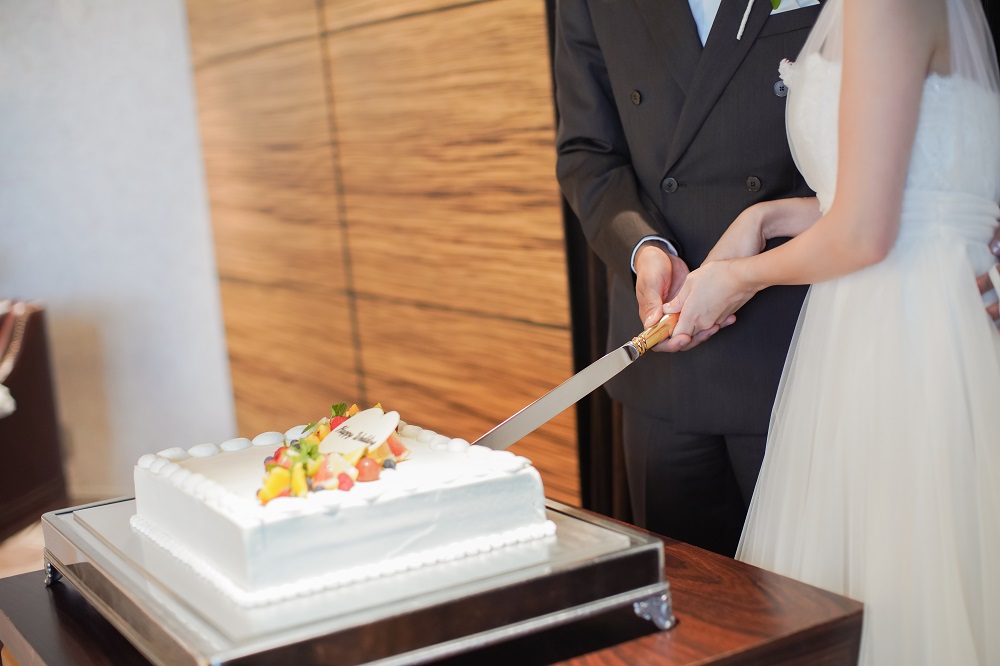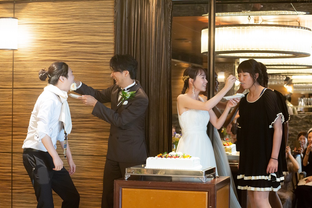 メインイベント『ウェディングケーキセレモニー』ではお2人で協力してケーキ入刀!